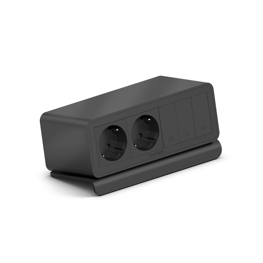 - Vorkonfiguriert mit zwei Wechselstromsteckdosen und drei Blindmodulen: Wird mit zwei um 45° gedrehten europäischen DE-Wechselstromsteckdosen (CEE 7/3) für einen leichteren Benutzerzugang geliefert, die neben passenden Blindplatten vorinstalliert sind. Ermöglicht den sofortigen Einsatz und erleichtert die spätere Erweiterung mit ICS-basierten AV-Modulen.
