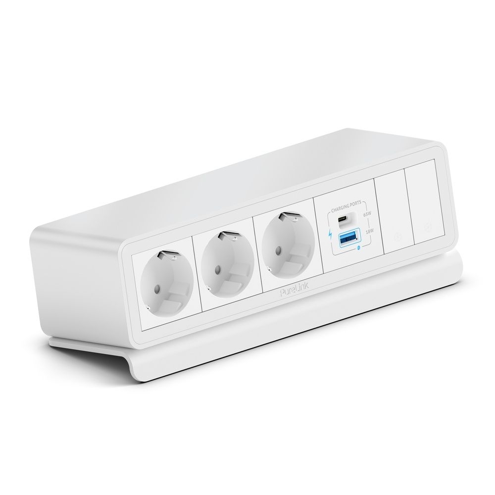 Preconfigured with three DE/EU AC sockets, one 65W PD module & two blanks